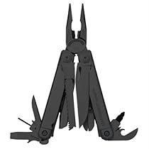 Needlenose/Regular Pliers Wire Cutters Hard/Standard Wire Cutters Electrical Crimper Clip Point/Serrated Knives Blade Exchanger Scissors Large/Small Bit Driver 5/16 in. Screwdriver Axl w/Thread Loop Ruler Bottle/Can Opener Wire Stripper Lanyard Ring. With Nylon Sheath.